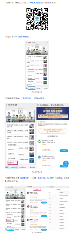 十堰市人民医院在2019年8月就联合微脉公司开通了鄂西北首家互联网医院。疫情期间,市民可通过「十堰市人民医院」微信公众平台进入互联网医院平台进行预约挂号、缴费、发热患者咨询、专科疾病咨询等服务,以此来满足患者的需求。门诊导医台咨询电话:0719-8637202。
