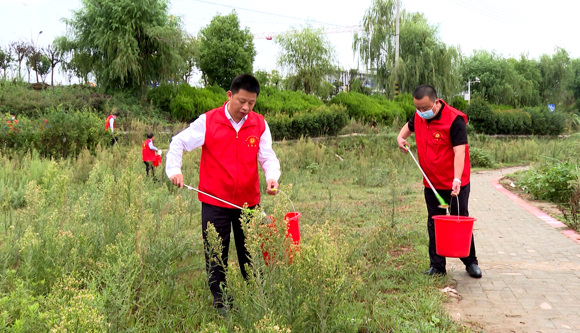 谢晓鸣在诗经广场清扫垃圾