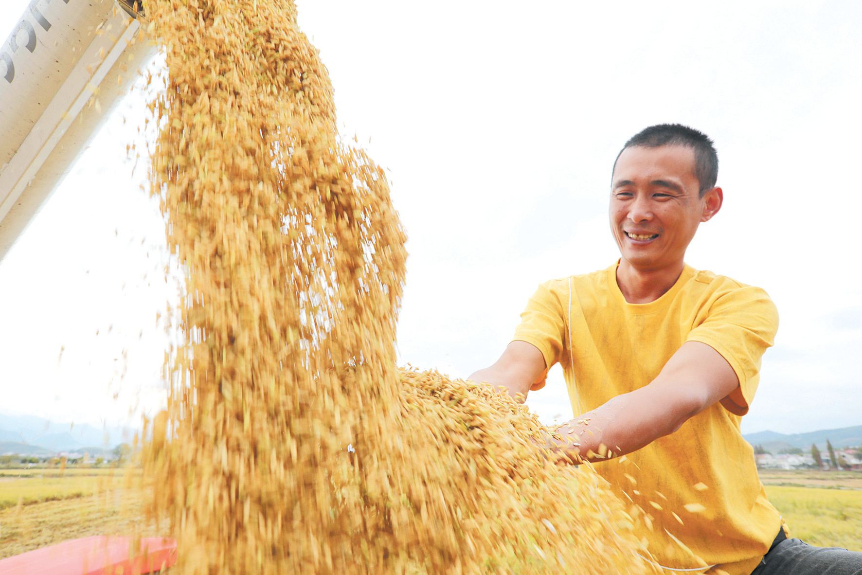 9月23日,是第五个中国农民丰收节。在房县军店镇下茅坪万亩灌区,农民收获金黄的稻谷,脸上洋溢着丰收的喜悦。连日来,房县各地抢抓晴好天气,开展全域机收水稻,确保粮食颗粒归仓。