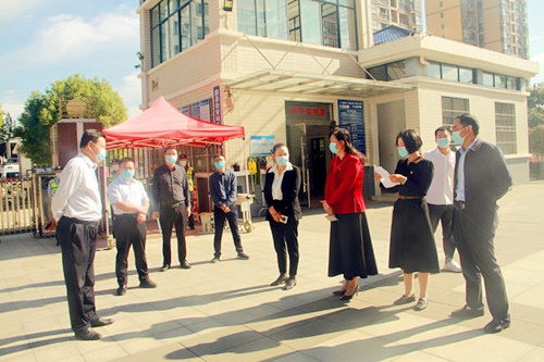 王玲一行深入现场查看学校校门、门卫室、教室、厕所、教师办公室等重点场所,通过察看校园环境、听取领导汇报、翻阅档案资料的方式,对学校疫情防控、学校网络安全、意识形态、舆论舆情、维稳工作、学生安全教育等方面的情况做了深入细致的全面了解。