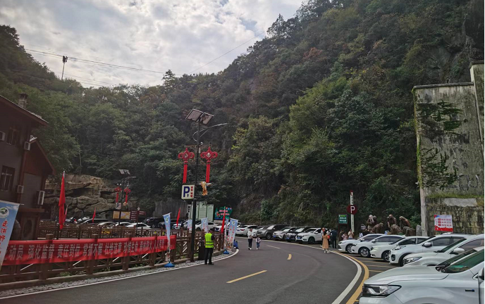 房县新闻网讯 国庆小长假首日上午,房县野人谷景区已经迎来了第一波游客,记者在景区停车场看到了有序停放的车辆,工作人员正在维持秩序,在收票窗口,游客已经开始排起了长队在工作人员的耐心引导下陆续购票入园。