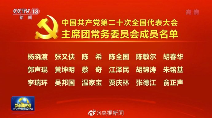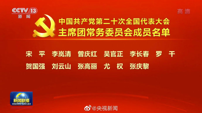 中国共产党第二十次全国代表大会主席团常务委员会成员名单