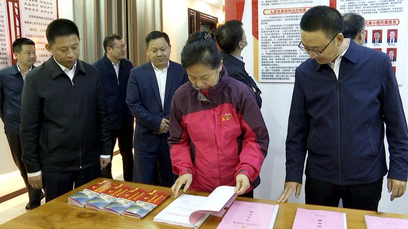 省委第五巡回指导组在红塔镇南潭村查阅共同缔造工作资料