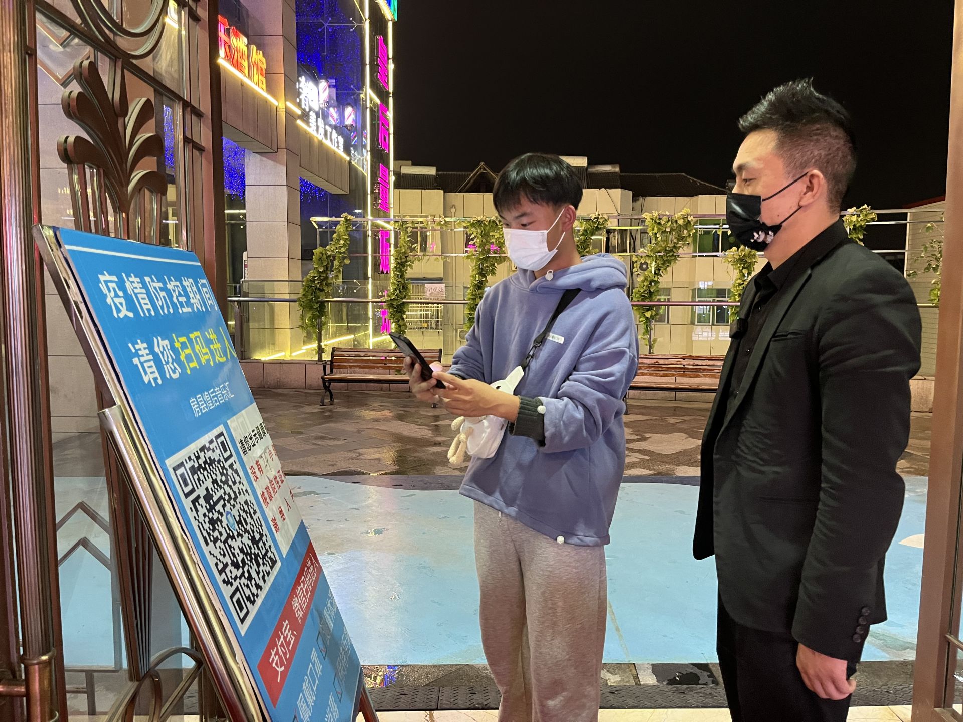 在皇后量贩KTV,记者看大工作人员正在引导顾客佩戴口罩、测量体温、出示健康码、查看核酸采访记录、登记个人信息。