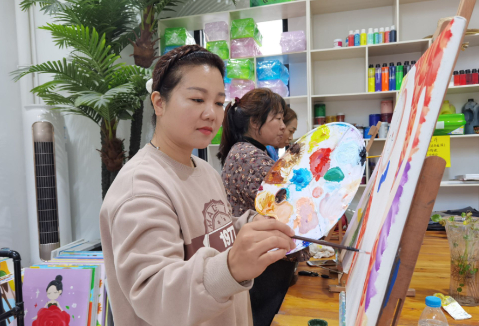安洛偃的丈夫也是一名职业画师,在房县,夫妻俩除了画画,就是教学生画画。“令我很意外的是,来我们这上画画课的不仅仅只是小孩,还有不少大人来报名,以前平时他们可能是在家带孩子、打麻将,现在也来学画画,我觉得挺有意思的。”安洛偃笑着说道。