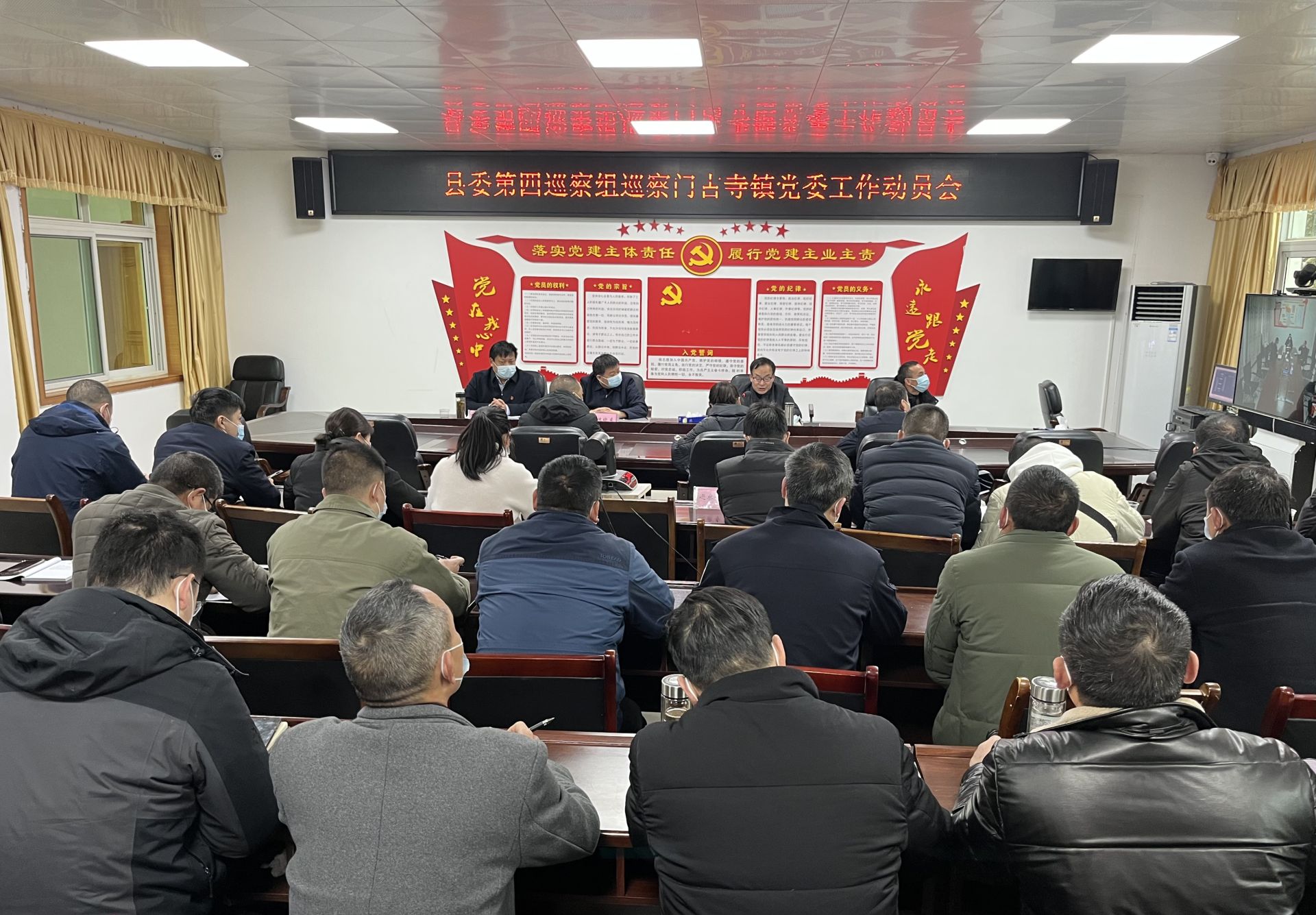 县委第四巡察组全体成员,门古寺镇全体在职机关干部职工,镇直单位负责人、支部书记,村书记、主任,驻村工作队第一书记,“两代表一委员”、退休干部代表参加会议。