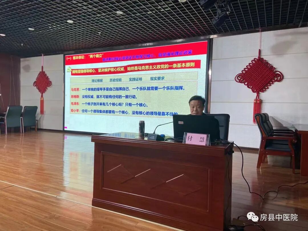 房县新闻网讯 通讯员 陈士军 席飞跃 报道:1月11日,房县中医院召开了学习贯彻党的二十大精神宣讲报告会,会议邀请了县委党校副校长、高级讲师付慧同志作专题宣讲,医院领导班子、全体党员及中层干部200余人进行了集中学习。