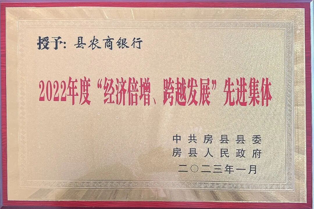 房县农商银行被房县县委县政府授予“2022年度经济倍增、跨越发展先进集体”等两项殊荣