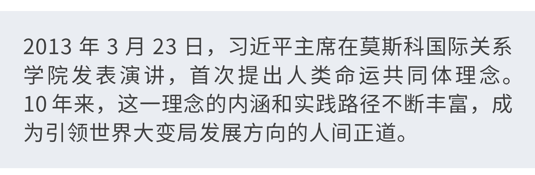 “我们两国要永做好邻居、好朋友、好伙伴”。10年前,当选国家主席后首次出访,习近平在莫斯科国际关系学院发表演讲时这样说道。也正是在这次演讲中,习近平主席首次提出人类命运共同体理念。