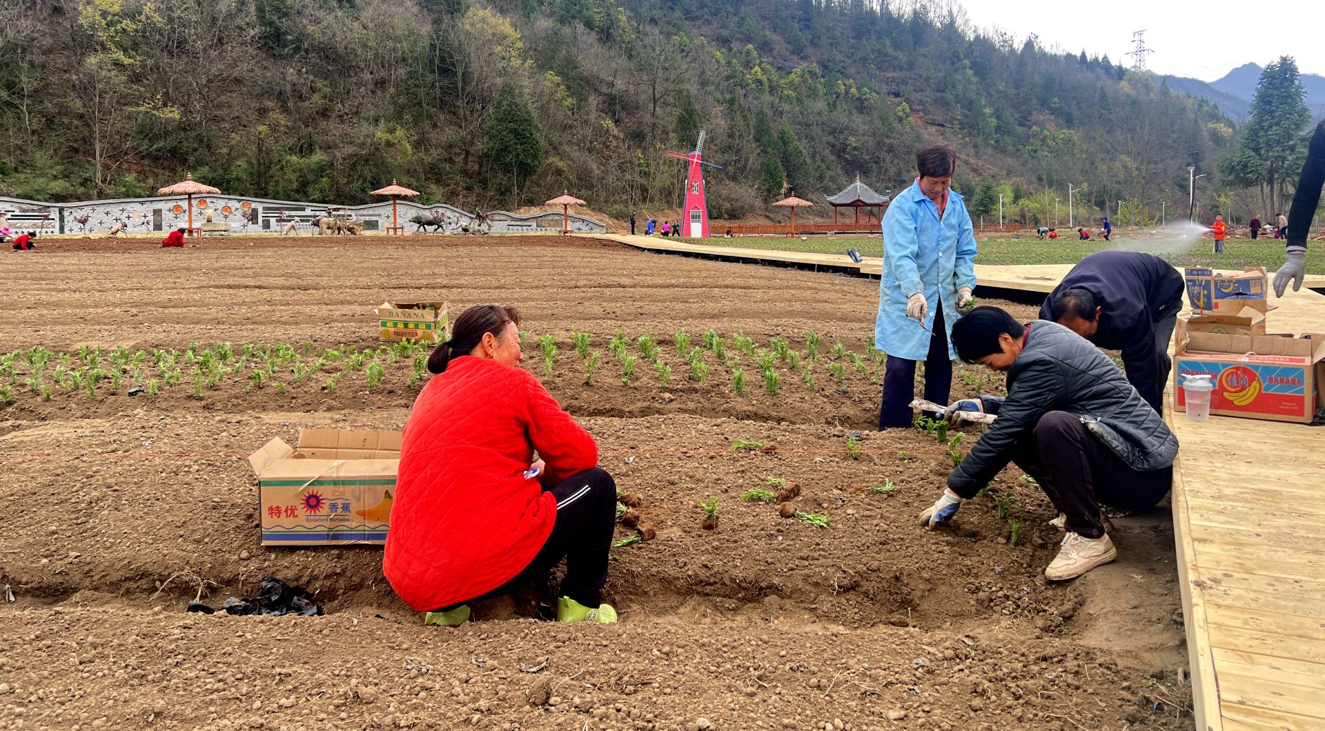 房县新闻网讯 通讯员 何梦雪 报道:4月1日,走进化龙堰镇上湾村,村民们奔忙于田间地头,平整土地、移栽薰衣草苗、为苗木浇水养护。