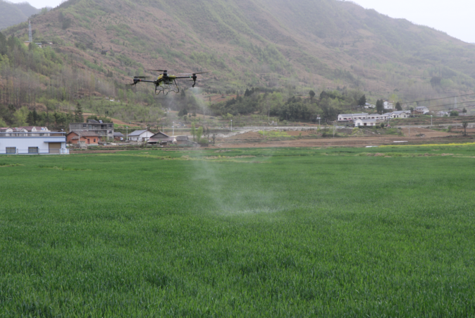 据了解,据单机每天可飞防500亩,比人工防治效率提高了近30倍,成本低、效率高,无人机打药的优点在于它更精准,通过精准配药、喷洒等精细化的作业,减少了农产品农药残留和环境污染,最大程度上保护了农业生态环境。截至目前,已经完成城关、军店、中坝等乡镇麦田喷洒,喷药4万余亩。