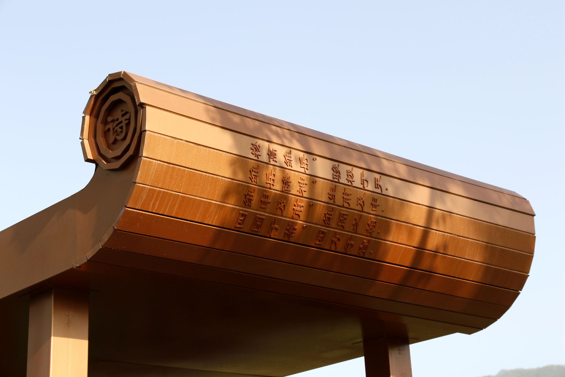 在吉甫路新建的公交站台,外观设计和整体装饰将“诗经、黄酒、野人”三张名片融入其中,外观设计形似诗经竹简卷轴,候车厅内“一部诗经、一壶黄酒、一个野人之谜”“千里房县 诗酒远方”“房县黄酒”等相关文字和图片美观大气,成为房县“三张名片”的展示窗口,也为房县城市增添一道靓丽的风景。