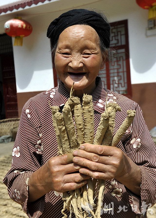 种植农户拿着自家种植的“板桥党参”