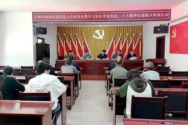 房县新闻网讯 通讯员高明波报道: 4月19日,古南河湿地管理局组织机关全体干部职工深入古南河国家湿地公园及其周边村,围绕学习宣传贯彻党的二十大精神、湿地生态保护、“两山”转化实践探索开展能力作风建设实战练兵活动。
