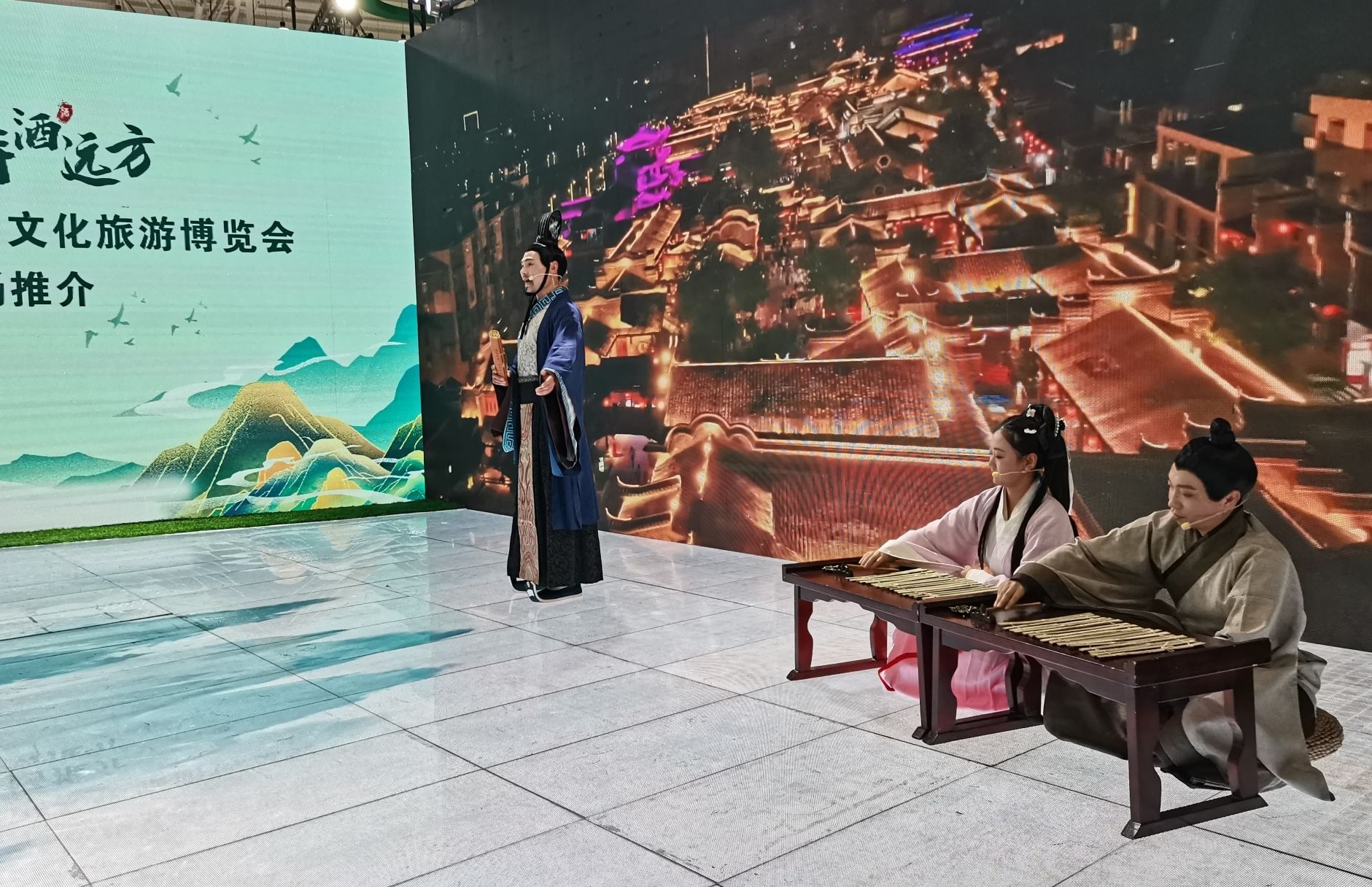 “蒹葭苍苍,白露为霜。所谓伊人,在水一方。” 现场,舞蹈《《蒹葭》》、《关雎》、《桃夭》、《野人舞蹈》,将活动氛围推向了高潮。房县IP代言人“尹吉甫”穿越现场吟诵《诗经》,“房小陵”、“诗小雅”两大IP代言人与尹吉甫同台推介,充满诗经元素的表演引得游客纷纷拍照、点赞。