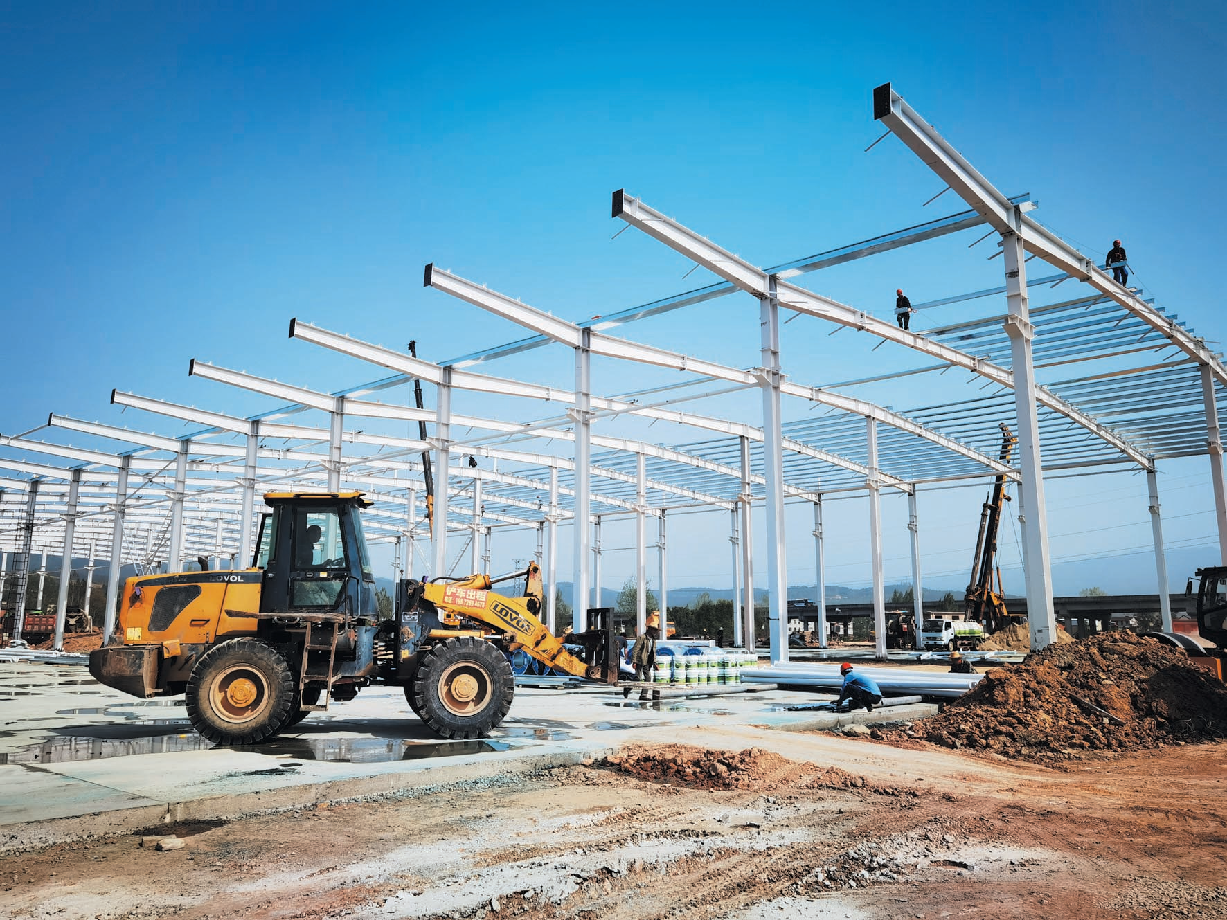 11日,记者在位于城关镇桃园社区的房县铝型材产业链项目建设现场看到,工人们在吊车高擎“手臂”的帮助下,搭建钢结构厂房。项目总经理罗云介绍,该项目于今年1月27日开工,目前正在建设钢结构厂房,本月底前进行设备安装调试,预计6月初试投产。