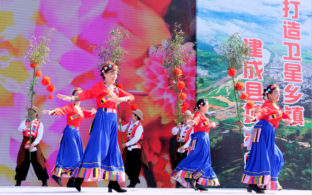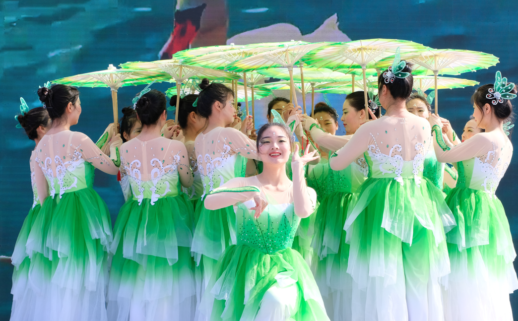 活动现场举行了精彩的文艺表演,演出在舞蹈《盛世欢歌》中开始,军店小学表演的古典舞《绿意》、傣族舞《水中小傣族》展现了学生积极向上的精神风貌,赢得了现场父老乡亲的阵阵掌声。军店镇文化站、月明村、上茅坪村、军店社区等文艺表演队带来的节目表演唱《俏姐妹拍抖音》《放眼飞歌赞军店》、广场舞《志愿者旗帜飘起来》跳出了军店镇人民群众和谐美满的幸福生活,歌颂了老百姓对党的好政策、对军店镇日新月异新变化的赞美,展现了新时代军店群众的新面貌、新生活。