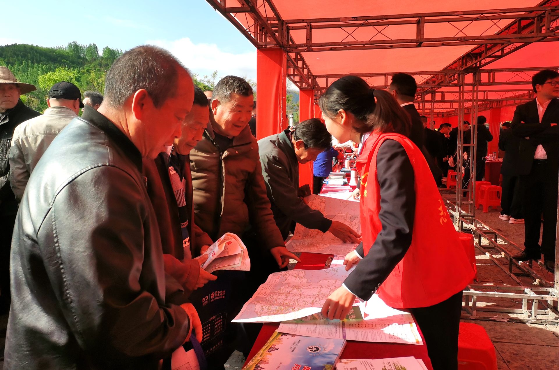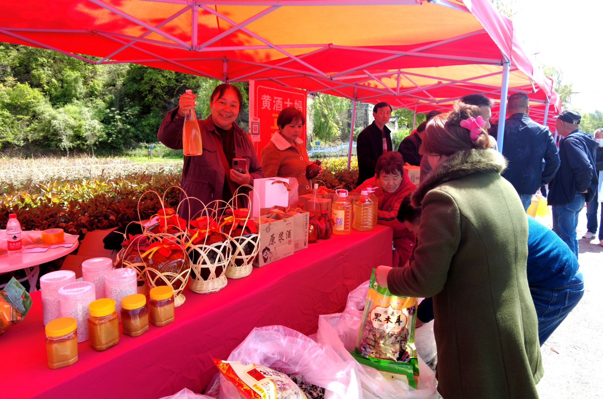 活动现场,还进行了政策宣传和农产品展销。政策法规宣传和义诊区域,众多县直单位现场讲解安全生产、防电信诈骗以及各类法律法规知识,发放各类宣传手册、手提袋、宣传单,利用举办活动的机会向更多群众宣传法律法规,增强大家的守法意识和安全意识。在农产品展销区,各村社区组织群众将自家的农副产品拿出来现场销售,香菇、木耳、红薯粉、蜂蜜、天麻等农产品颇受外地游客的青睐。