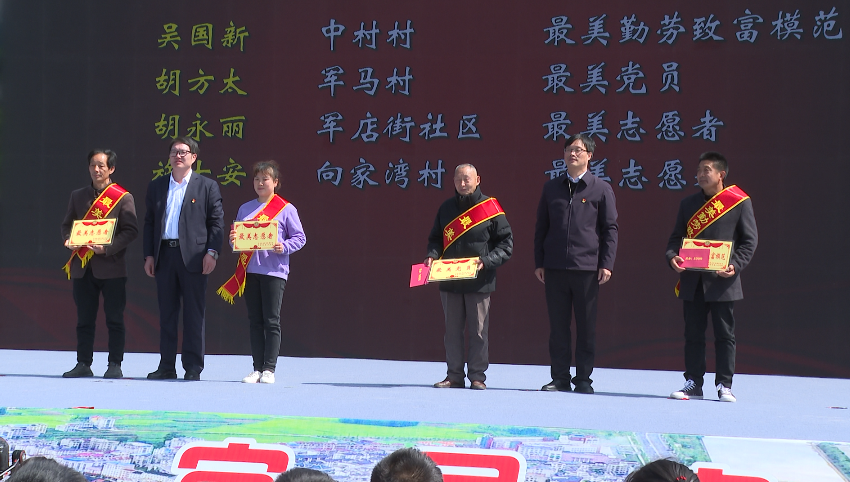身边榜样大家评,表彰先进树榜样。活动现场为评选出的7名军店镇2023年度典型模范现场颁奖:“最美庭院”刘继成、“最美家庭”刘冕英、“最美乡贤”向怀玉、“最美勤劳致富模范”吴国新、“最美党员”胡方太、“最美志愿者”胡永丽、“最美志愿者”施士安。现场还表彰了13名获得军店2023年度典型模范提名奖,通过表彰一批农村典型模范,激励广大群众见贤思齐、向上向善,为推动军店高质量发展凝聚强大精神动力。