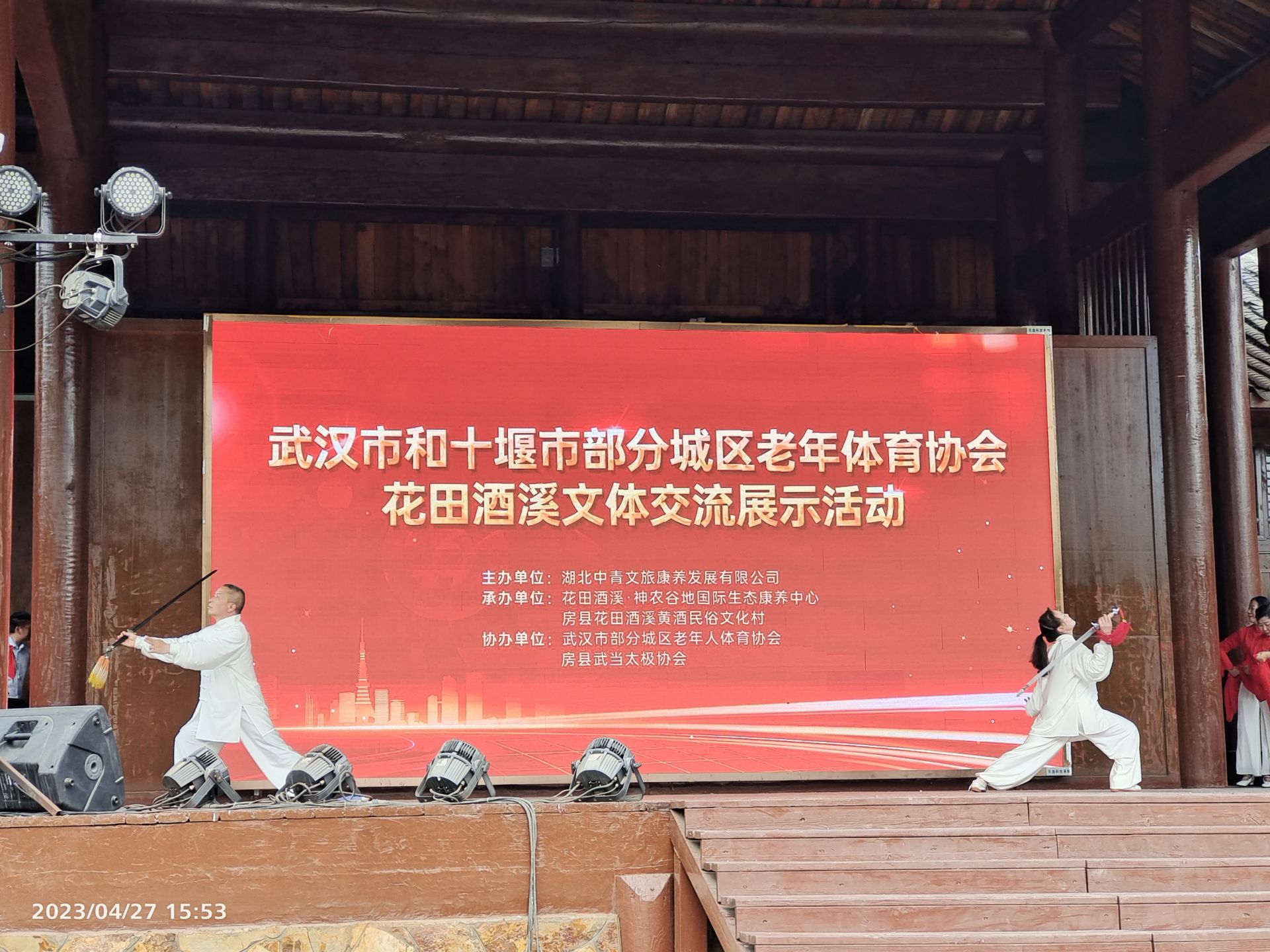 房县新闻网讯 :五一前夕,房县武当太极协会组织近百名会员,在花田酒溪与湖北中青文旅康养发展有限公司、武汉市部分城区老年人体育协会、花田酒溪神农谷地国际生态康养中心、房县花田酒溪黄酒民俗文化村、来自武汉市的部分市区老体协 共同举办花田酒溪文体交流展示活动,并在房县西关印象“百戏楼”与房县黄酒协会、西关印象文旅公司、人才协会联合举办了庆五一武当太极专场展演活动。