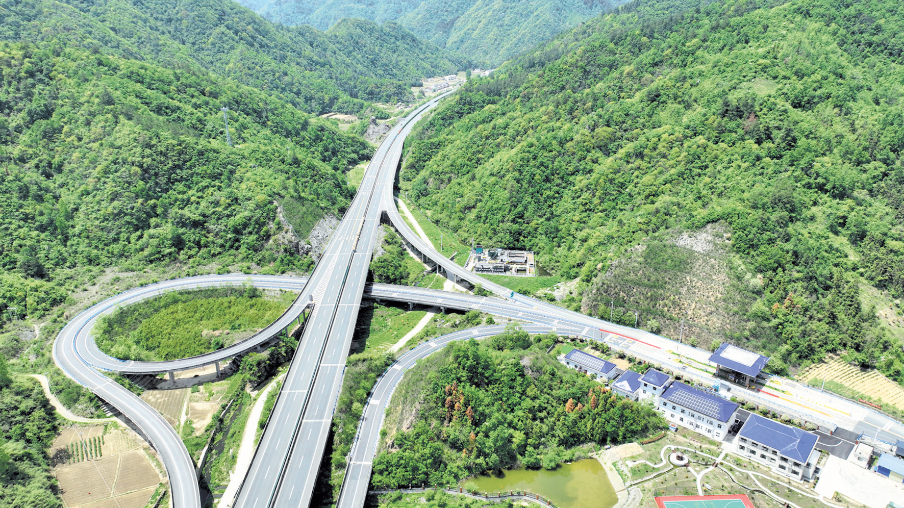 5月5日,记者拍摄的谷竹高速公路房县窑淮镇互通。近年来,该县加快推进高速公路与县乡道路互通连接工程建设,形成县城2小时到乡镇、10分钟上高速公路、1小时到机场的“211”交通经济圈,有力促进县域经济发展和乡村振兴。(特约记者 张启龙 通讯员 孙淑芬 摄)