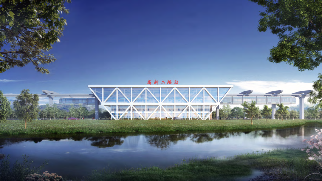 光谷空轨,沿生态大走廊南北向直线布设,整个项目(含一期、二期)起于花山碧桂园生态城左岸,经由花山河、九峰山、光谷中心城、综保区、龙泉山、中华园,止于牛山湖环湖湾区。线路全长约26.7公里,设站16处,并配套车辆段与停车场各1处。