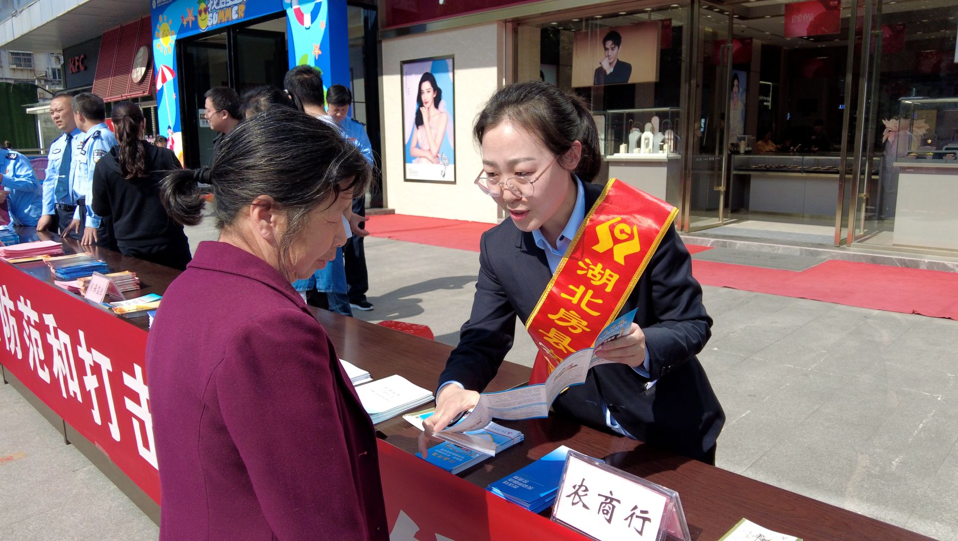 房县新闻网讯 记者 秦珊珊 报道:今年5月15日是第十四个“全国公安机关打击和防范经济犯罪宣传日”,为增强群众防范意识,帮助群众守好“钱袋子”。5月12日,房县联合县金融办、县公安、县市场监管、县银保监、各大银行等,开展以“与民同心·为您守护”为主题的打击和防范经济犯罪宣传活动。副县长、公安局局长陈伟参加活动。
