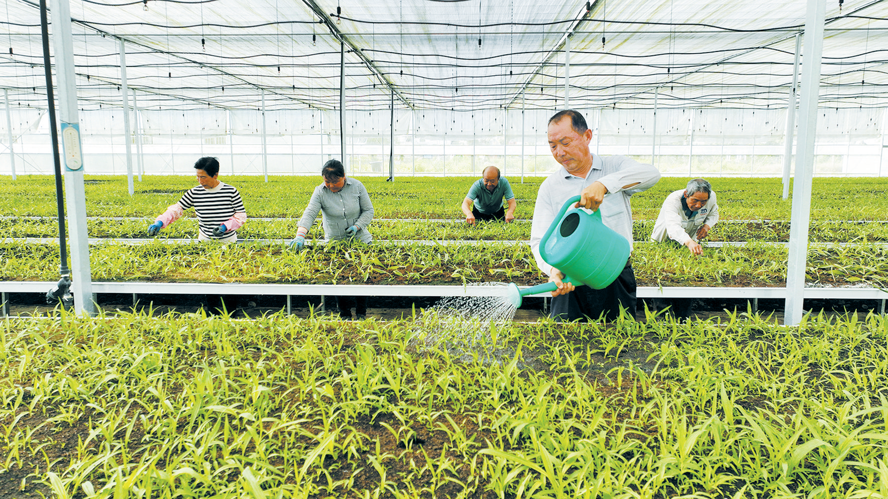 5月13日,在房县门古寺镇狮子岩村的野生中药材种苗繁育基地,当地农民正在给白芨种苗浇水、除草。近年来,房县着力建设“新、优、特”中药材新品种试验示范区、野生中药材良种繁育区,实现虎杖、柴胡、苍术、白芨、仙茅、天冬等道地中药材规模化育种、产供销一体,有效带动农民增收致富。(特约记者 张启龙 通讯员 王少娟 孙淑芬 摄)