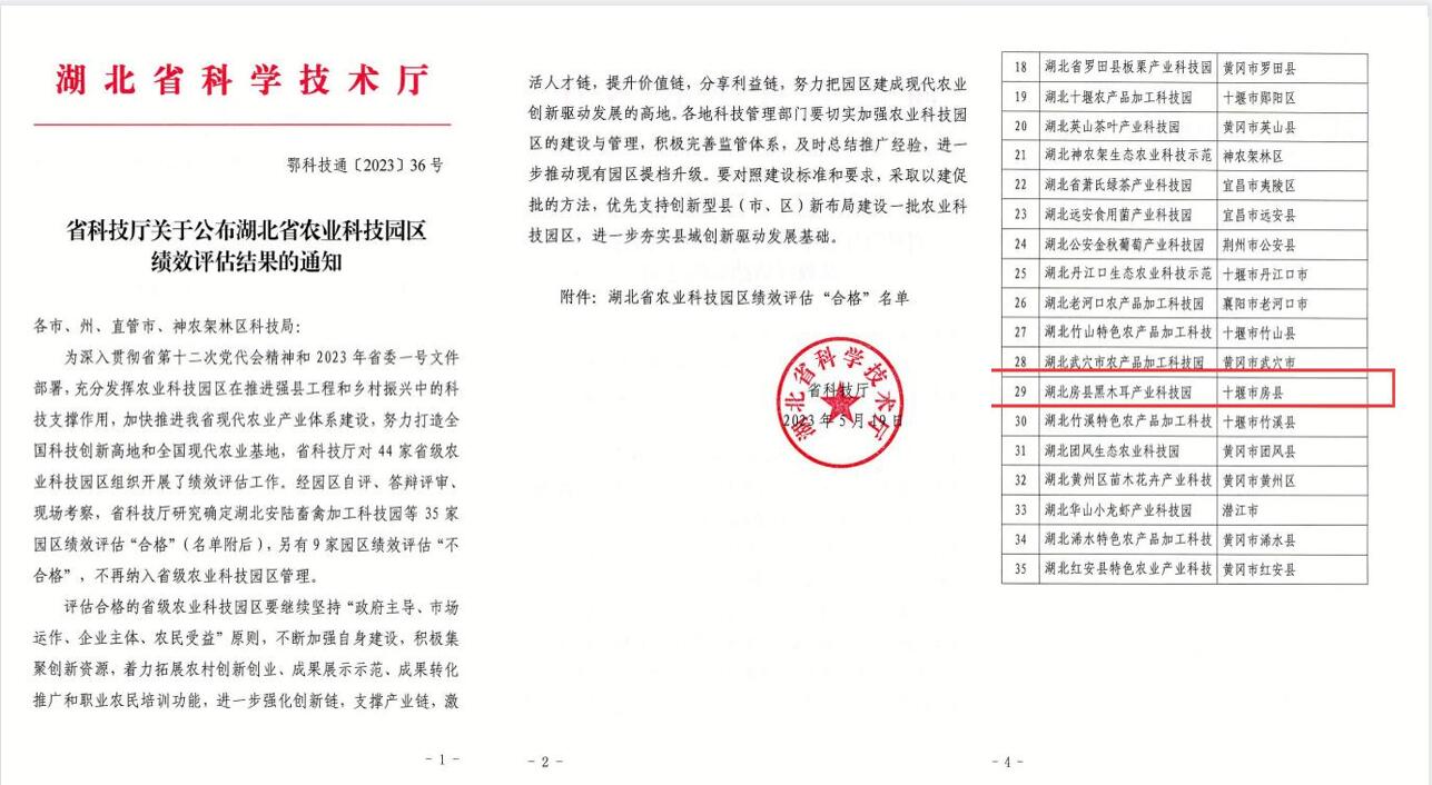 房县新闻网讯 通讯员 昝鹏飞 报道:近日,省科技厅公布2022年10月启动开展的全省农业科技园区绩效评估结果,房县黑木耳产业科技园顺利通过评估验收,这标志着房县农业科技发展水平又上一新台阶。