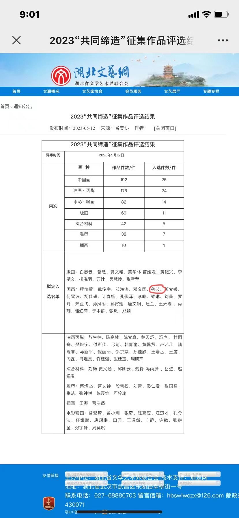 房县新闻网讯 通讯员 张立林 报道:近日,由湖北省文联、湖北省美术家协会主办的2023“共同缔造”征集作品评选结果公示,房县美协谷波创作的国画《春晖》入拟定入选名单。