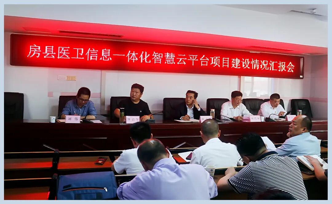 县卫生健康局领导班子成员,房县人民医院党政领导班子成员和来自全县20家医疗单位代表参加质控中心揭牌并听取房县医卫信息一体化智慧云平台项目建设情况汇报。