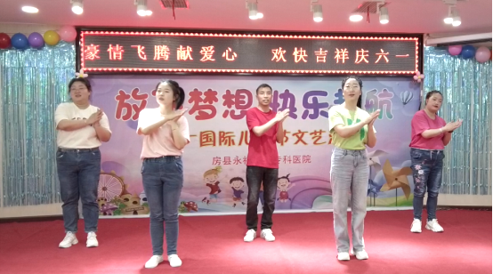 活动在欢快的歌舞中正式开始,儿童康复科医护人员与小朋友及家长们表演了《六一来啦》、《爱的奉献》、《吉祥》和《最亮的星星》将节日欢乐祥和的氛围营造出来。