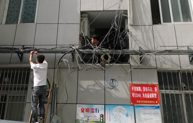老旧小区各类“飞线”问题不仅影响小区容貌,还存在电路私拉、老化漏电、易引发火灾等安全隐患。工作人员将老旧小区改造遗留的“飞线”,按照规范、有序、安全、美观的原则,采取辨别、梳理线路、剪除报废线路的方式,将网线、电线梳理整齐,强弱电分离,并牢牢固定在线槽内。对空中缆线缠绕、掉落、乱拉乱牵等问题进行全面规整,对具备归入线槽条件的缆线入管下槽,而对不具备入线槽条件的缆线进行梳理、捆扎、剪除,做到能合尽合、避免“蜘蛛网”,让“飞线”安全牢固、整齐有序、美观协调,让小区面貌清爽宜人。