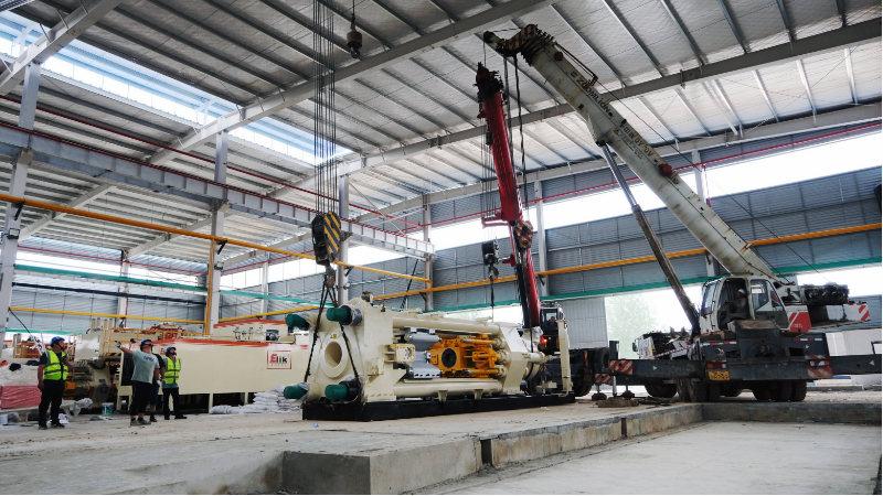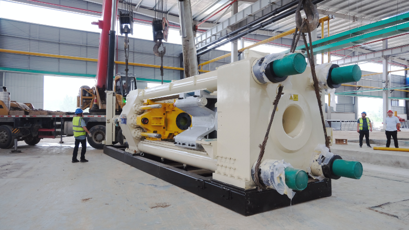 房县新闻网讯 通讯员 李丽娜 冯杰 报道:6月16日,在湖北能发集团天为铝型材项目建设现场,三台大型吊车齐发力,重达100吨的2000T铝型材挤压机被安放到预定区域。
