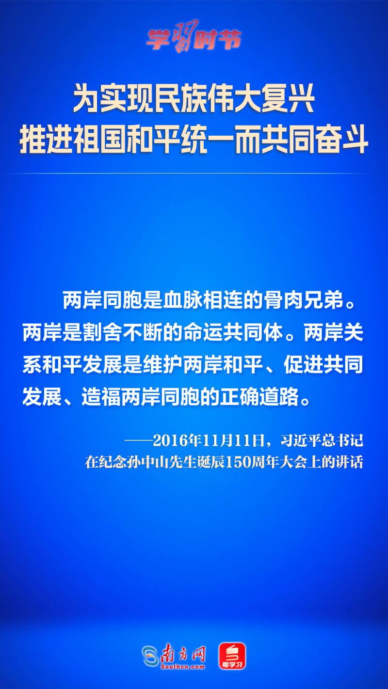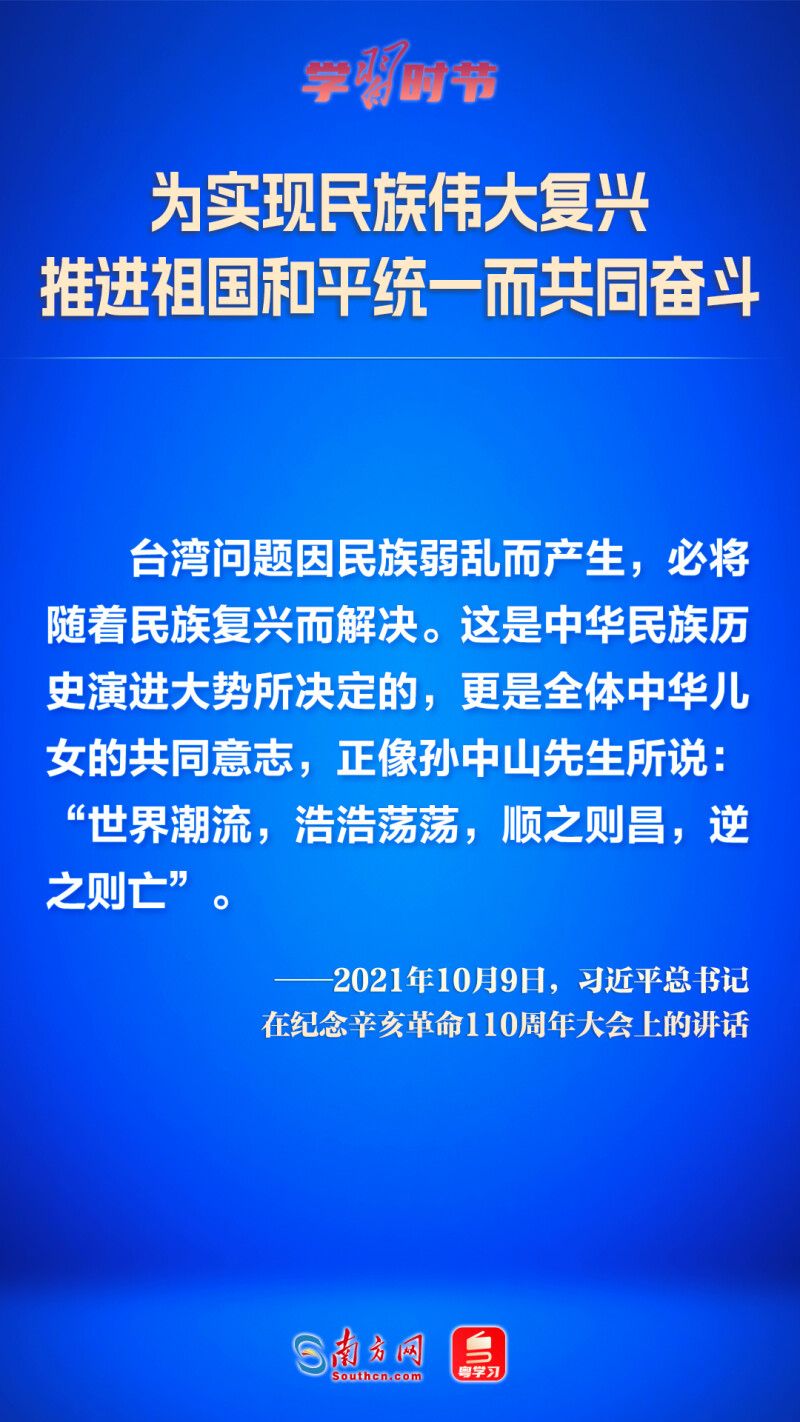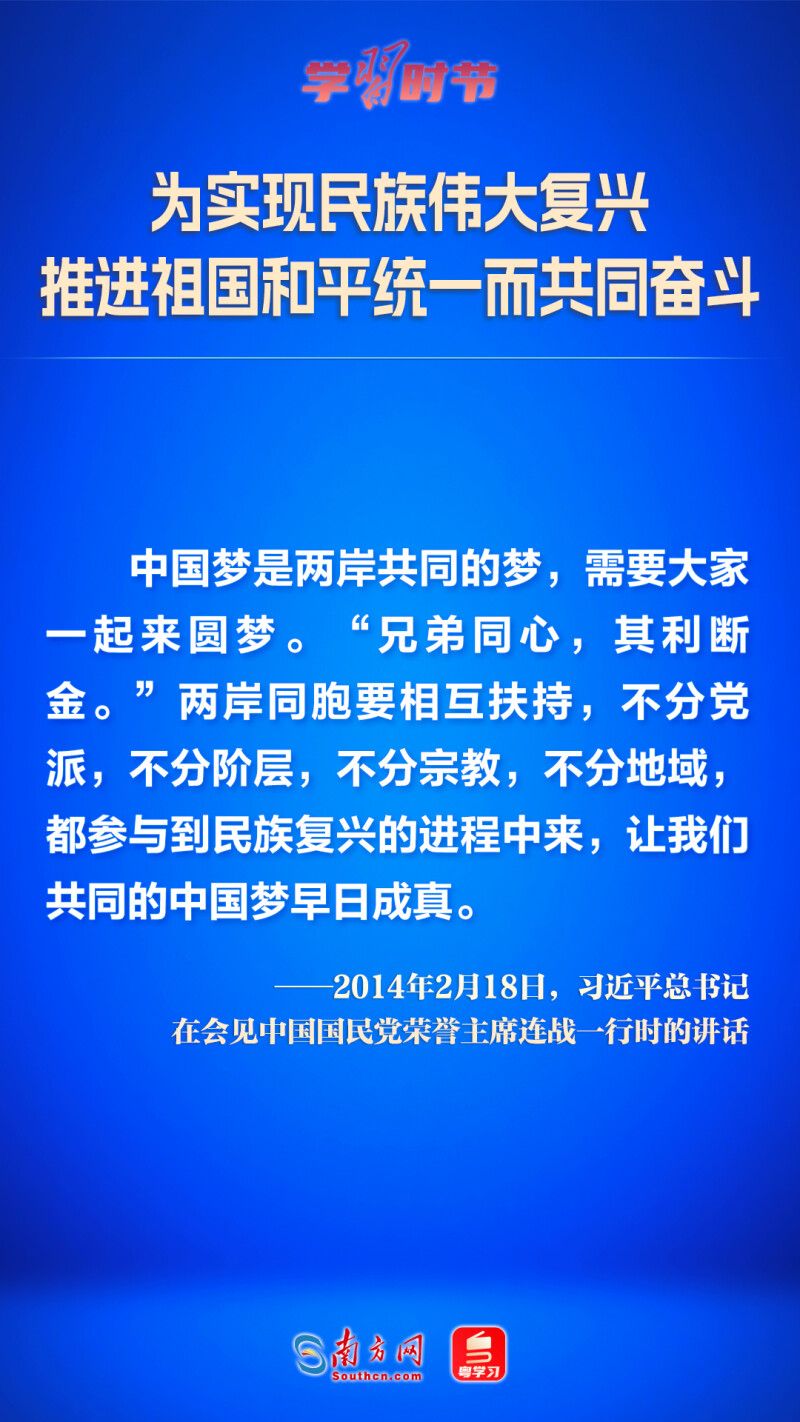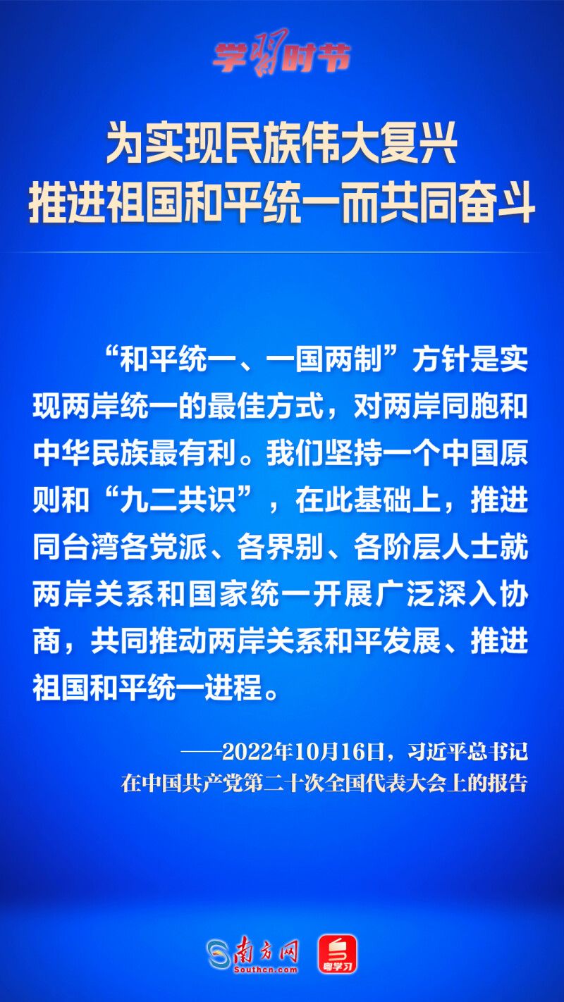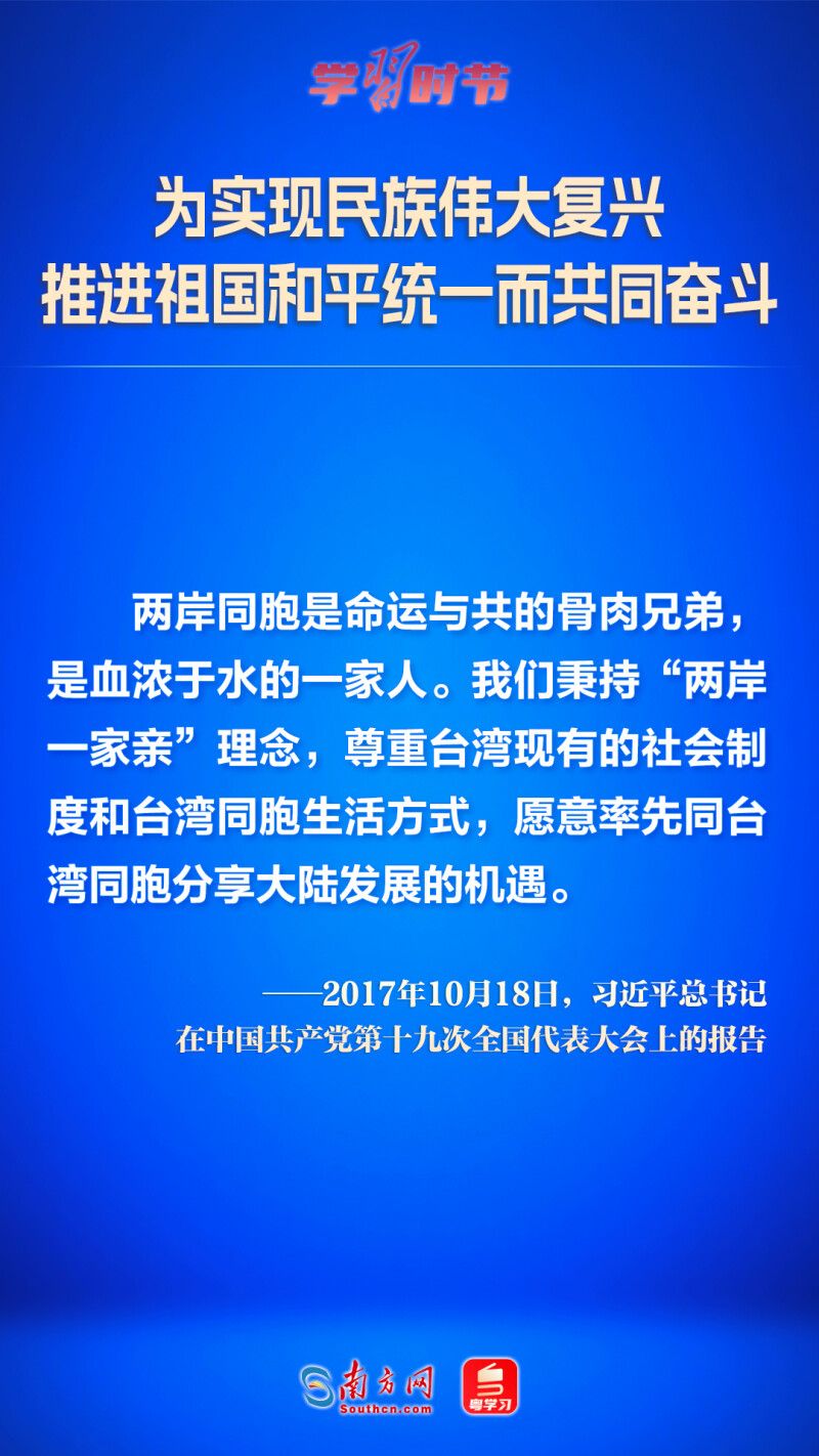 解决台湾问题、实现祖国完全统一,是中国共产党矢志不渝的历史任务,是全体中华儿女的共同愿望,是实现中华民族伟大复兴的必然要求。