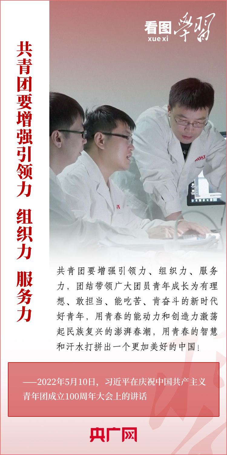 中国共青团是中国青年运动的先锋队,是党的忠实助手和可靠后备军。习近平总书记高度重视共青团工作,强调共青团要增强引领力、组织力、服务力,团结带领广大团员青年成长为有理想、敢担当、能吃苦、肯奋斗的新时代好青年,用青春的能动力和创造力激荡起民族复兴的澎湃春潮,用青春的智慧和汗水打拼出一个更加美好的中国!