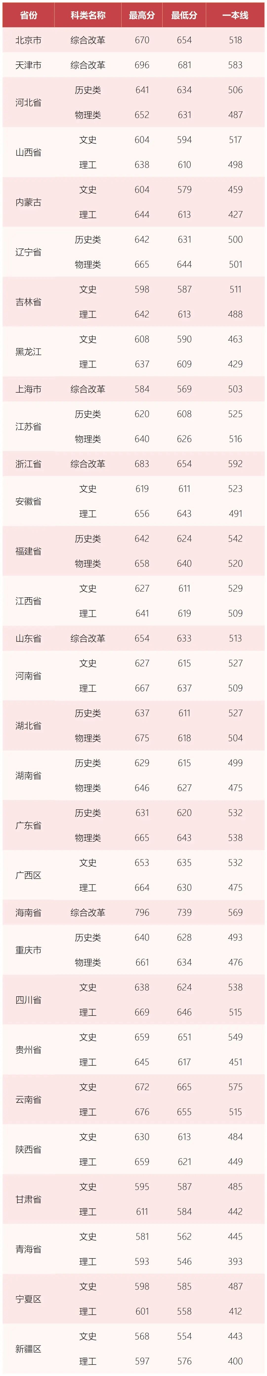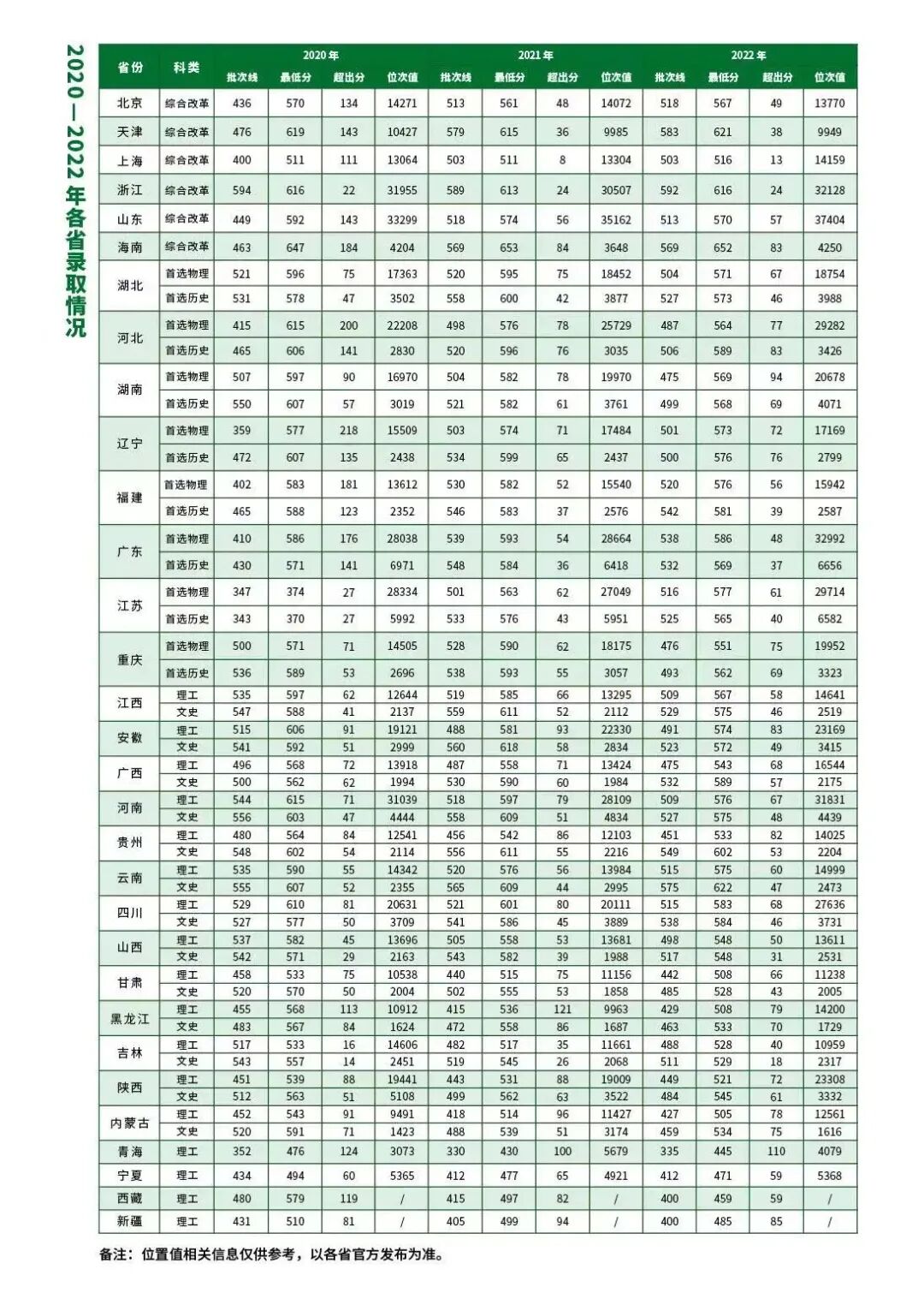 2022年各省份录取情况