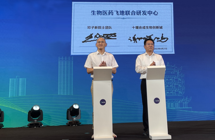 在开幕式的重点项目集中签约仪式上,房县作为唯一的县市区代表参加现场签约,谢晓鸣代表十堰合成生物创新城与中国科学院邓子新院士团队签订了“共建生物医药飞地联合研发中心”合作协议。此项合作打破招才用才限制,实施“人才在外地,科研为房县,项目在异地,产业在房县”的“飞地模式”,每年投入2000万元科研经费,与上海博士团队共建“生物医药飞地联合研发中心”,双方将深入推进合成生物终端产品及合成生物相关配套产业研发。协议的落地将拓展合成生物城的经营业态,完善上下游配套产业,推动产业赋能升级,打造产业链头部企业,为房县实施乡村振兴战略提供有力支撑。
