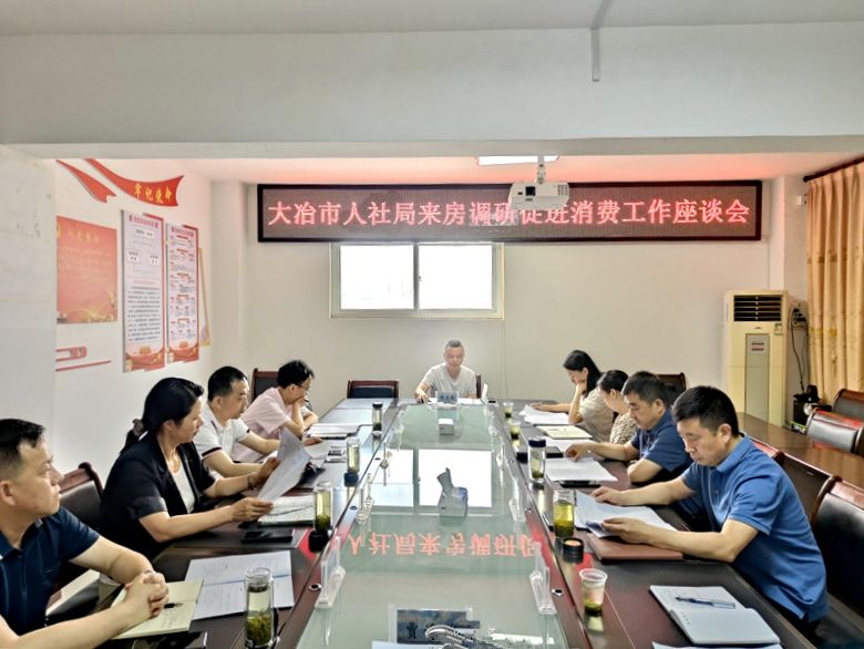 房县新闻网讯 通讯员 柴长国 贾海燕 报道:6月27日,大冶市人社局党组书记、局长黄朝海带队来房县调研促消费经济发展工作。