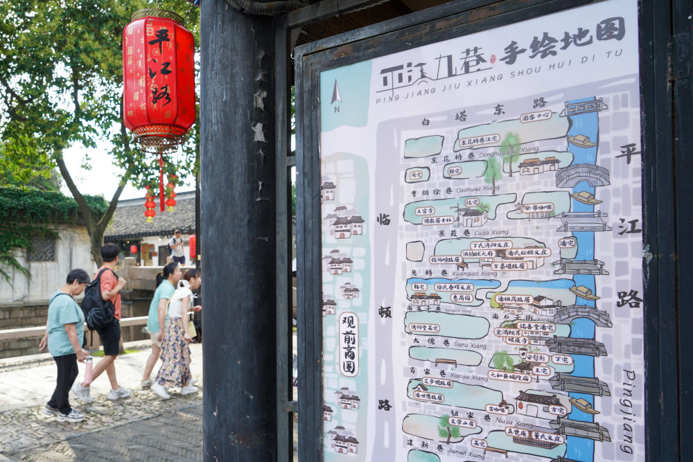 平江历史文化街区现存的整体布局与宋代《平江图》基本一致,仍然基本保持着“水陆并行、河街相邻”双棋盘格局以及“小桥流水、粉墙黛瓦”的江南水城风貌。