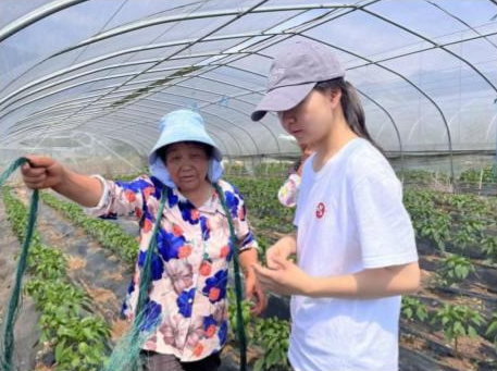 调研期间,调研小分队的同学们深入李堰村基层,和当地村民进行亲切交谈,仔细了解乡村振兴为村子里带来的变化。实地查看冬桃产业发展,了解李堰村村民们突破气候土壤等条件的制约,采用电商带货的形式,进行冬桃的销售,发展产业增收。在上湾村的文化大礼堂,细心体悟乡村振兴示范村的发展沿革。走进上湾村,一座座连片的蔬菜大棚,一条条平坦整洁的道路,一弯弯僻静的山边步道,一汪汪清凉的小桥流水,一间间别具风格的农家小院,给予同学们别样的感受。漫步田间小路,一望无际的绿色映入眼帘,是生机,是活力,更是绵延不绝的生命,一茬茬糯稻的“挺身而出”,一串串绕枝而上的四季豆,一簇簇的辣椒小苗,共同摹画出生机勃勃的上湾村。