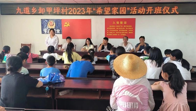 房县新闻网讯 通讯员 刘政 报道:为更好地关爱我辖区青少年儿童,同时引导和帮助广大学生在社会课堂中受教育、长才干、作贡献,同时做好暑期作业辅导、自护教育、文体活动、思想教育等活动,让志愿者与孩子们度过一个平安、快乐、有意义的暑假。7月11日,“希望家园”开班仪式在卸甲坪村和八里坡村两个教学点同时举行。