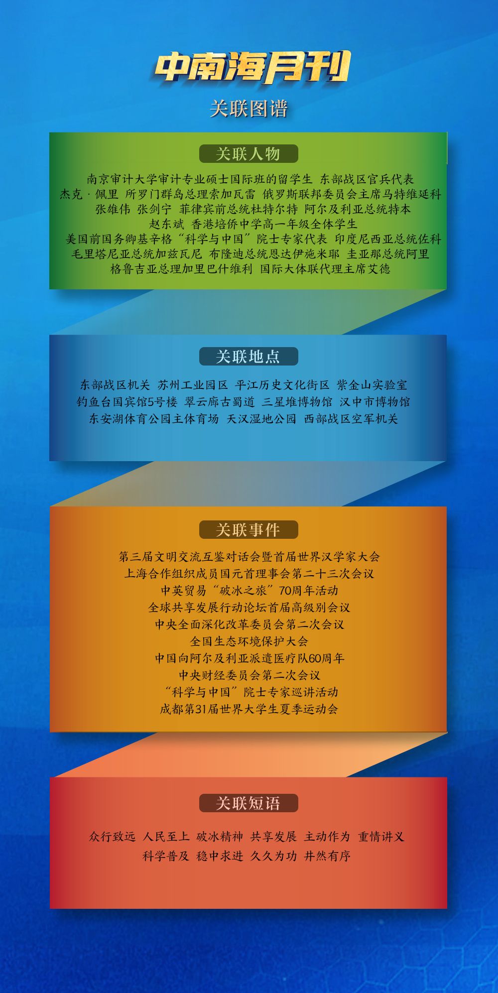 央视网《中南海月刊》运用智能大数据,与您一起回眸七月,从关系到新征程开局起步、中国式现代化行稳致远的大事要事中,感受实干为笔、担当为墨,看宏伟蓝图如何转化为高质量发展“实景画”。