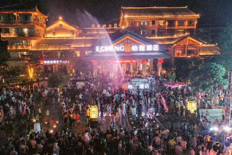 房县新闻网讯 8月11日晚,“夏爽清悠·畅游房县”暨2023房县首届避暑纳凉节活动在房县西关印象景区周南广场进行。活动由房县县委宣传部、房县文化和旅游局主办,房县旅游协会指导,房县西关老街文旅有限公司和湖北房县大裂谷旅游开发有限公司共同承办。活动吸引了来自十堰、襄阳、安康等地的游客近2万人参与,通过歌舞演艺、电音蹦迪、国潮模特走秀、喝啤酒比赛及具有民族特色的泼水等游客喜闻乐见的形式,活动中重点推介了以青峰大裂谷景区的漂流和西关印象景区的夜游两大景区为主的暑期旅游产品。