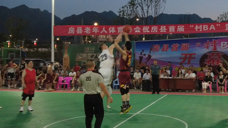 房县新闻网讯 记者 杨正强 通讯员 吴丽丽 报道:8月16日,房县诗经广场篮球场内热闹非凡。由乡村球员领衔的房县首届“村BA”火热开赛。县委常委、宣传部部长王玲为篮球比赛举行跳球仪式。