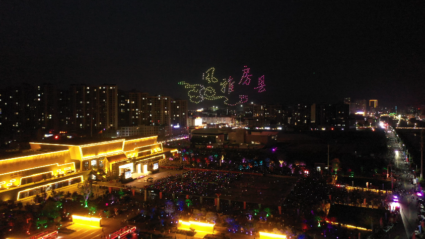 19时40分,伴随着激昂的旋律,300架无人机从地面缓缓升起,表演正式拉开帷幕。