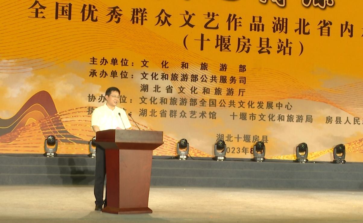湖北省文化和旅游厅二级巡视员李波,湖北省文化和旅游厅公共服务处一级调研员李四清,湖北省群艺馆党委书记、馆长邢君成,十堰市政协副主席刘庆涛,十堰市文化和旅游局党组书记、局长吴善宏等省市领导出席活动。县委副书记、县长谢晓鸣致辞。