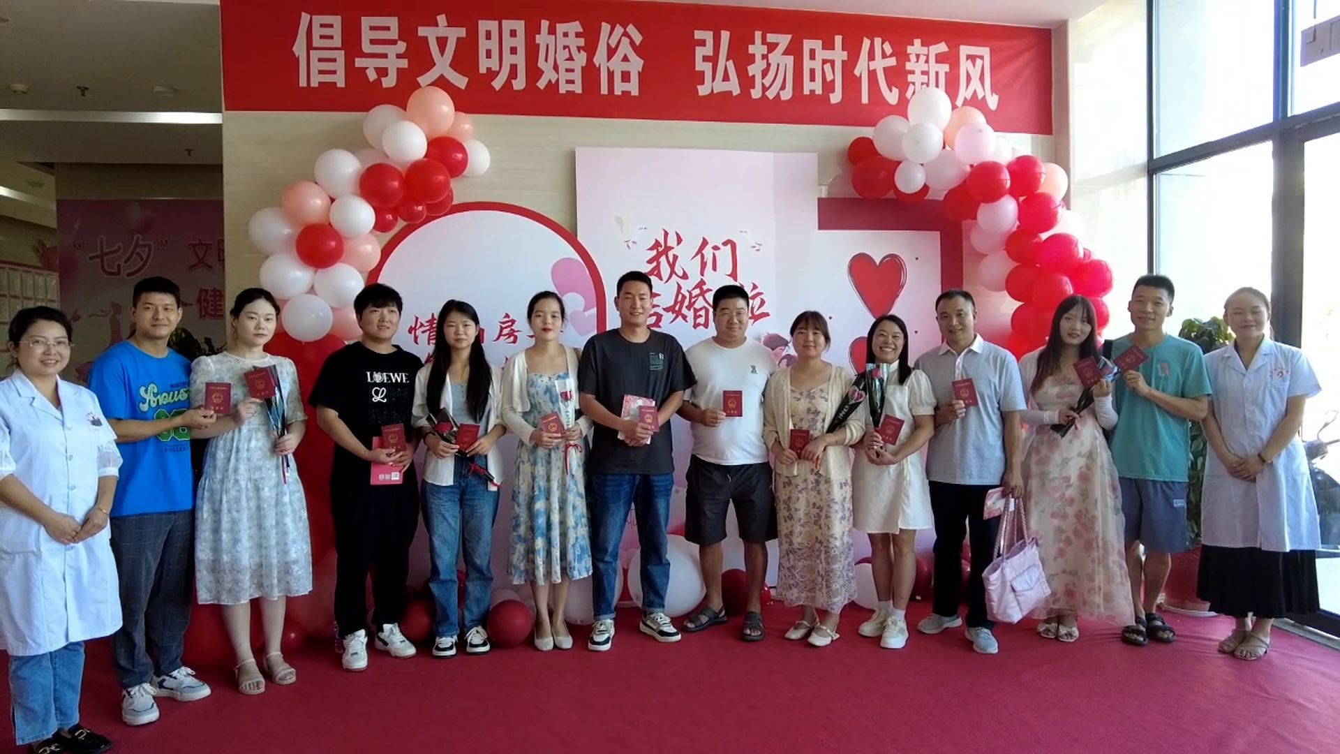 截至中午12时,全县共有24对新人办理婚姻登记,预计当天将办理结婚登记50余对。今年以来,县民政局围绕婚俗文化宣传这一主题,抓住春节、“2.14”“520”“七夕”等特殊意义的节日,从青年群体的特质和服务需求出发,开展了一系列别开生面的婚姻家庭教育、婚俗文化宣传等活动,引导全社会形成正确的婚姻家庭价值观、崇尚文明的良好风尚。