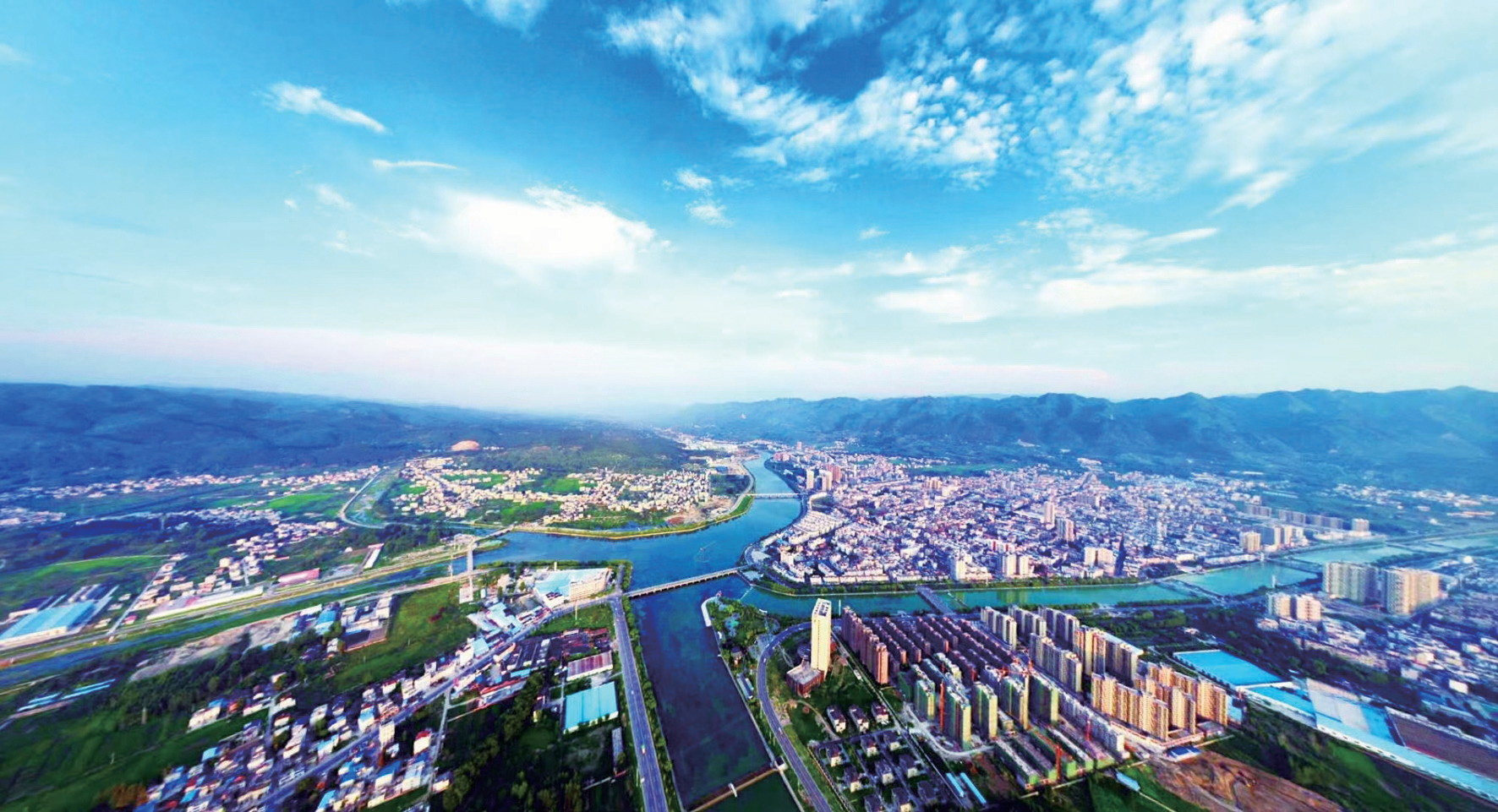 房县县城五河汇聚的壮观景象