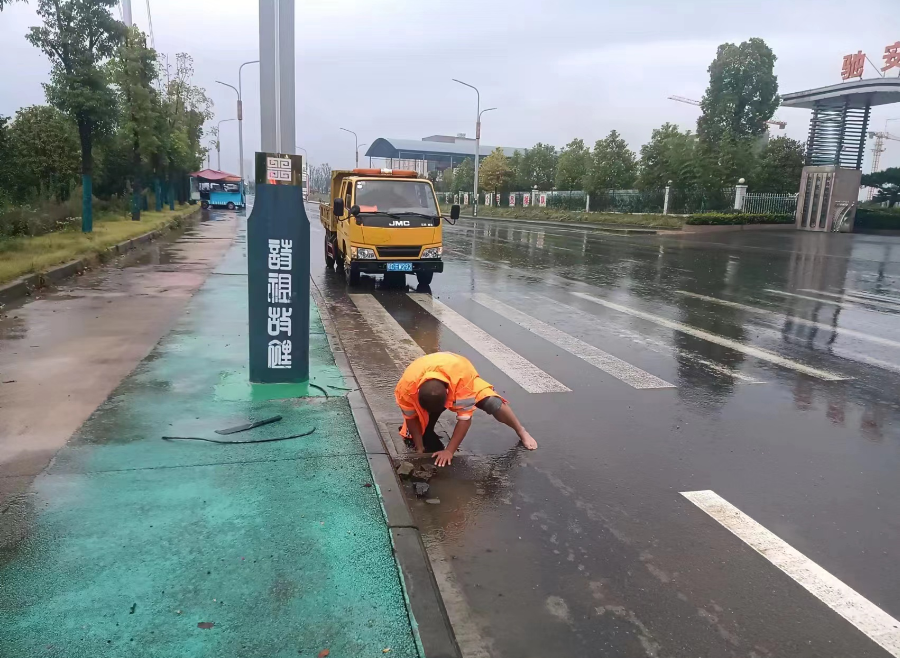 为预防城市内涝发生,此次降雨过程中,县交通局职工全员上岗,严格落实24小时值班和领导带班制度,暴雨期间加大重点路段巡查频次,按照道路易涝程度划分责任路段,确保每个路段在发生积水时第一时间进行疏通。在疏通过程中,工作人员利用扫帚、钳子、铁钎等工具及时清理水篦子周边的各类堵塞物,对杂物堵塞严重的下水口,工作人员直接“手工”进行清掏,确保道路排水设施通畅。